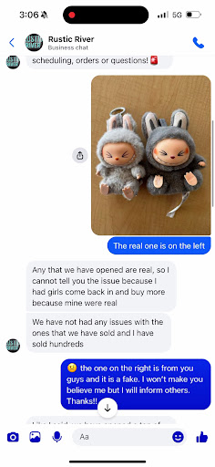 Informed owner that the Labubus were fake after purchasing one. I let her know through a private message to educate, not to belittle. However, I was attacked after. When I called her out for her rude behavior, she blocked me and proceeded to send me a friend request through her private profile. Owner is not kind nor professional. It’s fine to sell lafufus, just let customers know so there isn’t a sad kid out there or an angry parent....