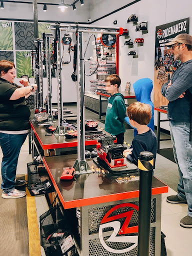 Read moreOur kids loved this place. When you come in, you pick from a range of different vehicles, ours were 29.99 each and included everything needed to make an entry level push car. For 25.00 each more, you can convert them to RC which we did. Once you pick your car, you move to another station where you can add on batteries for about 9.00. You also get your chassis with the option to upgrade to monster wheels. Then you choose your wheels and rims. There are basic and upgrade options. (You can probably bring your own batteries if you want to save a bit.) Next, you head to the center of the store where a pit crew member sets up your station giving you time to add on any light bars, spoilers, pipes, etc (all optional upgrades) Marc was our pit crew member and was incredible with our little kids. He let them be as hands on as possible, showed them how the power tools worked, and explained everything very patiently to some very excited kids. After they built their cars, they paired their RC remotes and got to drive around the track taped onto the store floor. All in, it was very comparable to build a bear pricing. Once you pick your cars, you’re in control of add on costs. They made recommendations but we never felt obligated to add on. The kids are obsessed with these cars and I’m impressed with how substantial they are. They feel worth the price, for sure. Our girl picked a pink, pearl and purple sports car and our boy got a big f150 style truck. They both insisted on holding them the whole way home and haven’t stopped playing with them since. It’s the best souvenir we’ve...