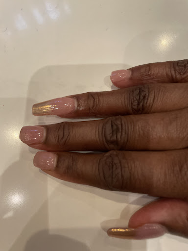 it took a full hour for her just to remove my past gels, and file my natural nails. i didnât get acrylics or anything like that, it was literally just her filing - and she filed my nails very unevenly so that one side was slanted and made very sharp points even after i requested several times to have a rounded almond shape. (i eventually just gave up and went home and filed them myself). it then took another whole hour for her to paint and put the chrome powder on. and she painted the nails very unevenly as well - i noticed as i was leaving that the nail polish was globby and while it looks alright from afar, has a strange textural consistency. i know it would make sense to go back and get them corrected, but honestly, i would rather just deal with it rather than risk spending more time there.