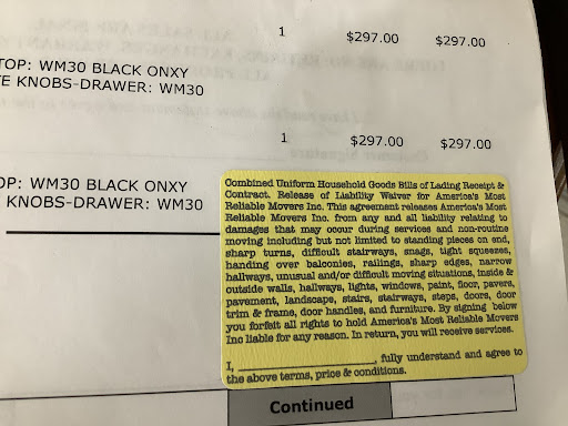 The delivery, set up with americas most reliable movers, was horrible. They expected me to sign, before delivery, a liability clause. Photo attached. The leader was confrontational about the liability clause, saying everyone signs, and it’s just about hitting the walls. I said no signing, you can take furniture back to store. They decided to proceed without me signing. I’m so glad I didn’t sign, they were rude and rough. The leader asked me who owned the house, this made me uncomfortable. Why would he need to know this. One guy kept saying over and over, “this is taking too long, we have all those miles to drive yet”. This made the whole delivery traumatizing. It was a difficult delivery, because a table had to be taken apart. Which they tried hard not to do, until they realized they would have to bring it back to the store if they didn’t. We had to watch them closely, because they were not careful, and hit some walls and the refrigerator. Matter brothers does not own the moving company, but they have the responsibility to properly vet the companies they use. A customer should be informed upfront that a liability clause must be signed prior to delivery, as this is not customary.