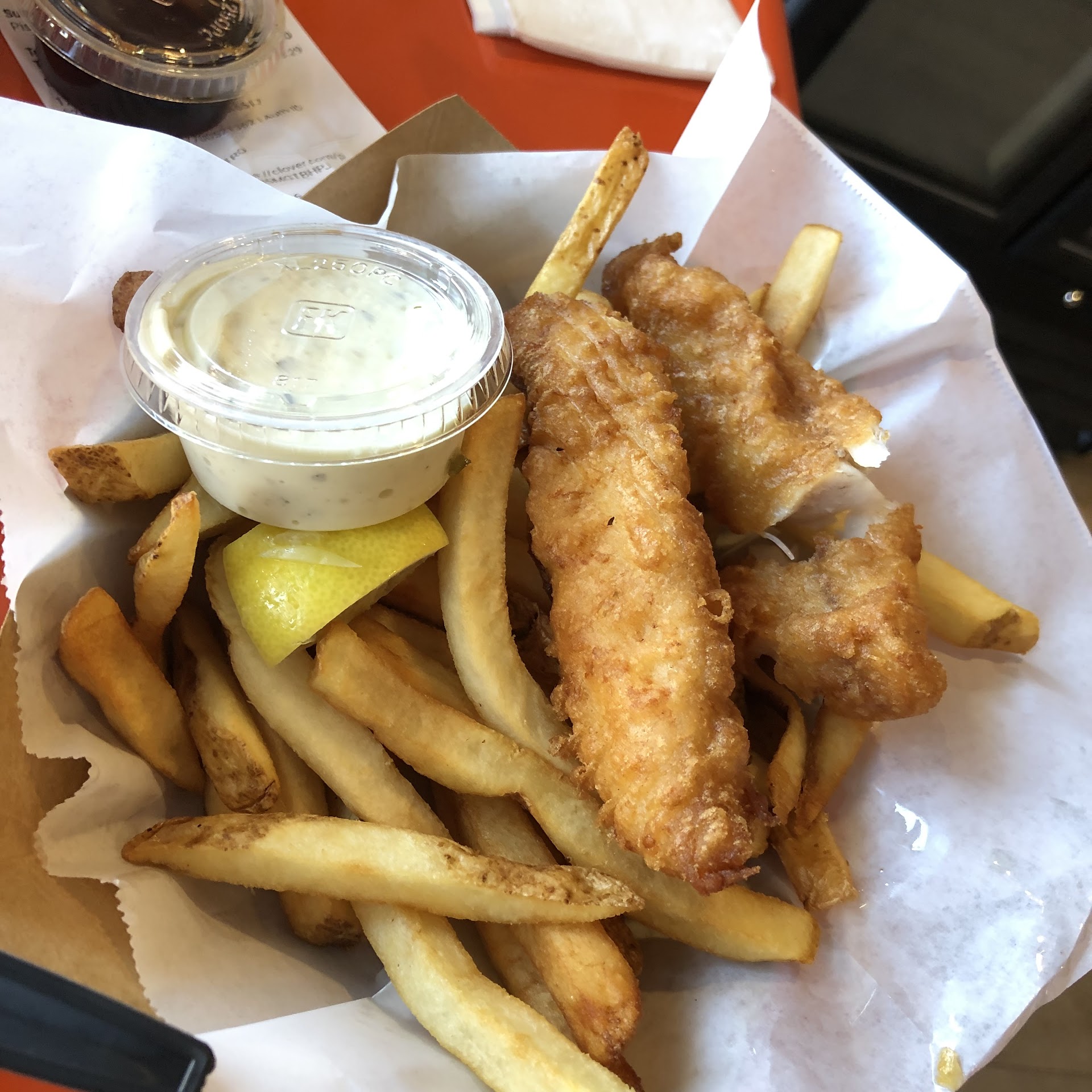 The rock cod n chips were fried to perfection. Batter stayed on every bite and was seasoned well. The fries... extra crispy exterior and stayed crispy.
