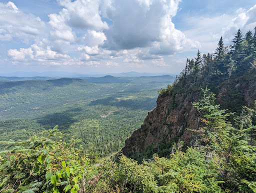 A short, steep hike to Mt. Magalloway. You can do it as a loop hike using both Bobcat and Coot Trails which intersect just below the summit. Bobcat is steep and it was muddy (there's been a ton of rain this year). There's a view before you get to the summit. At the summit is a fire tower which gives you really good views in all directions on a clear day (it was pretty hazy when we were there, probably due to the smoke from the wildfires in Nova Scotia) and a trail along the ridge giving you a good view from the cliffs. The Coot trail is more of an old jeep road, apparently, but it's very steep in places and is kind of a talus slope so it's easier to lose...