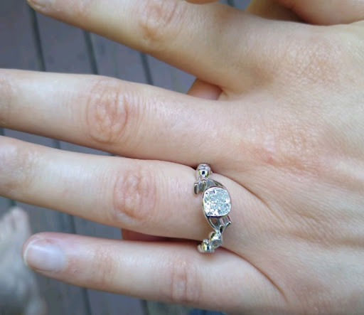 During production Caesar would reach out with updates. After several weeks, the ring was ready and we picked it up today. Itâs stunning. I canât believe I need to wait to wear it đ. Caesar offered complimentary cleaning and repairs for life, and continued to educate me on what to look out for if Iâm concerned the stone is loose or the ring is too big.