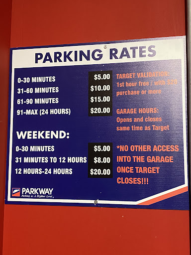 They supposedly give you a voucher for free parking if you spend more than $20 (it printed out a voucher for us with our receipt) but the kiosk wasn't accepting our voucher, we had to call the help service.