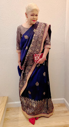 I got overly ambitious and decided to wear a sari to a Diwali event. I wore a Kurti pant suit last year but decided to brave it and get a sari this year. I searched online for shops that sell read- to-wear, pre-stitched saris and came across Saris and Things. I placed an order for a lovely navy and gold sari. The next morning, I got an email, text and phone messages, and a (missed) phone call from Ayesha at Saris and Things notifying me that my selection had already been rented out. I called her back and she apologized profusely, and sent me photos of a few other options. I settled on another beautiful navy blue and gold sari that she picked. The sari shipped out by UPS Two-Day shipping that afternoon. This was a Tuesday and my event was on Sunday afternoon.