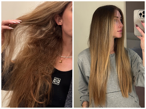 I had Japanese straightening done 20 years ago, and many Brazilian blowouts since then, but stopped these due to fear of chemicals. Since stopping, my hair texture was totally unmanageable — insane volume, frizzy, crazy curls, and had to be dried/straightened which was always time consuming.