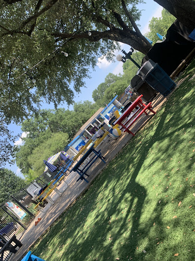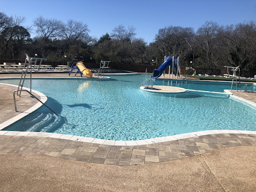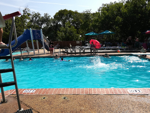 The murals painted on the exterior of the bathroom building are nice and the concept of a Texas shaped pool is a cute gimmick. It's nice that this neighborhood has a historical landmark.