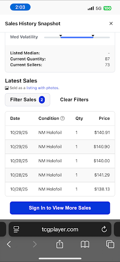 Here are some screenshots of tcgplayer listing and recent...