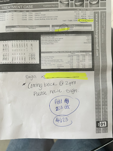 Part 1i I wanted to warn everyone about Smile Design Dental Plantation. Make sure you call your Insurance Company before any procedure to find out patient responsibility. I was in on December 6th they told me I had to have a root canal which was $596. And I needed a crown that was $902. Well since I don't have that kind of money I decided just to get the root canal and I left paying $663. Well there must be a God because today I received my EOB and decided this time to look at it and it states that I owe the dentist $246 and 50 of that is my deductible. I went to the office and she said there's no one there I can speak to I told her she needed to call the manager and she called the office manager and the office manager said that she doesn't think she overcharged me but she'll look into it on Tuesday. Now if I was that office manager I would have gotten that customer's phone number and called myself. We're not talking to $10 mistake we're talking $417 that they took from me. Also while I was on the phone with the insurance company I asked them how much my responsibility would be for a crown and I was told $325 well guess what Smile design Dental of Plantation wants me to pay $902. When I went there I said to myself maybe it's a mistake maybe they're going to apologize and they didn't realize that they charged me for everything and I didn't have the crown. But no they know what they did and that tells me that they're doing it to other people. So please spread the word that they should not use that dentist or please call your...