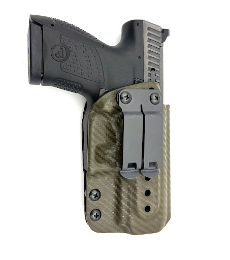 The green carbon fiber kydex holster is just very well made, durable, and it fits my CZ like a dream. Paired up with the monoblock clips, this holster is NOT coming off my belt.. ever. The leather holster is awesome as well. The clip fits very well to use with pants with or without a belt. It is VERY comfortable and i appreciate the full sweat shield cutout adding to comfortability and protecting against sweat discoloring the slide.