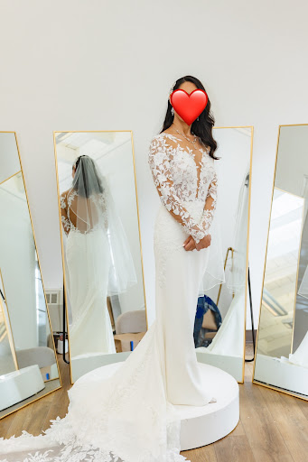 I was searching for an affordable dress option. After unsuccessfully trying white dresses from department stores I discovered some second-hand wedding dress' websites. There was a dress that piqued my interest and I noticed it was a sample from J'aime Bridal in Pleasanton. After messaging them they invited me to come to try it on in person.