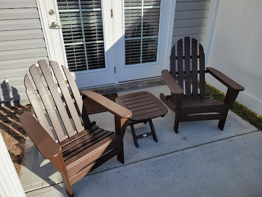 Recently I was walking at a Nature Preserve and was somewhat startled to see boardwalks and benches made of decaying or dilapidated wood. It prompted me to write this review on the Adirondack chairs and side table I purchased a set of outdoor furniture (2 chairs and a little table) from Plastic Lumber Yard about a year ago. It's been great…everything I was hoping for. The set has sat outside this entire time and gets hit by both rain and sun (see attached picture) and it still looks as good as the day it arrived. Occasionally, I'll hose the chairs and table down to get pollen off them, but they are truly easy care. Assembly was straight-forward and took only 10 minutes to assemble all 3 pieces of the set. I had no problems. I also feel like the furniture adds a touch of class to my patio. It just astounds me that people would still use wood when plastic lumber is such a great product. It saves you the time and money from having to replace rotting or deteriorating wood and you can feel good about the fact that you’re making good use of plastics that otherwise would end up in a landfill somewhere. I highly recommend Plastic...