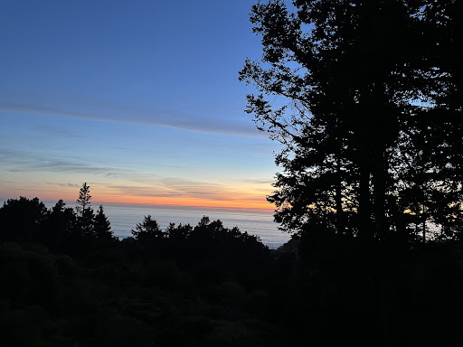 As I pulled up to the little modern castle in the sky, I was greeted by the birdsong of early spring. The symphony of species were a soothing first welcome from the busy and chaotic world, now far away from this verdant California paradise. The daffodils and Cala Lillies, welcomed before I stepped inside. The range of weather experience had it all. Chilly bright sunshine made its way through the fog for my strolls along the nearby tree lined trails, warming up enough for shirtsleeves as I gazed through the canopy to silver, orange, lavender skies at sunrise and sunset. Just down the hill a short drive to the beach strolls where the tide pools full of vibrant seagreen and pink enemonies also had adorable families of seals dotting the nearby waves. A quick stop for a lovely cup of tea at the nearby lodge by the fire while watching the epic nature swirl outside in views like paintings.