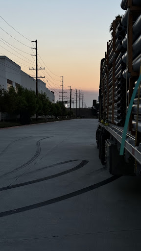 For flatbed truck drivers: they have overnight parking at the gate. The gate opens at 6 am. You need to drive around the building to the back side, there's a big dock here.