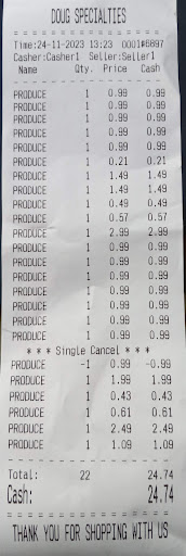 Oh and Doug puts out nothing but good produce. I remember once I was looking for grapes because there wasn't any out. I went up to him and asked him about it and he said "they didn't look good, so I didn't put them out." We all know some places would still put it out there and try to make a sale. So I greatly...