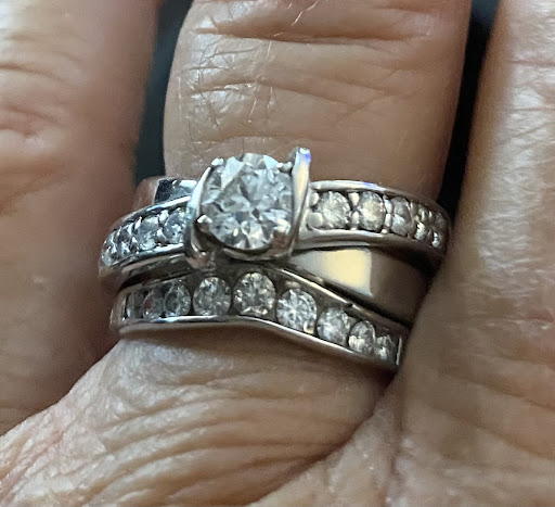 Took my ring to be sized and a diamond that had been lost replaced. Also asked if possible to solder my engagement ring and wedding band together. Told us no, no big deal. Then got a call that said there was no diamond missing. Okay cool. Got another call the next day and told us they were wrong there is a diamond missing, so we asked to have it fixed, told we could pick it up between 2 and 3 that day. At 3:30 we go in to pick it up, and are told he was too busy and didn't do it. First of all this was 3 days after dropping it off and we live an hour away, so really inconvenient and frustrating that it just "wasn't done." Anyway. He shows it to us to show us where the diamond was missing, and it was soldered??? Okay fine. So he asked me to put it on and asked how it felt and I assumed he meant the soldering as he said it hadn't been done. Said it was fine. Left it to be finished and the next day my grandmother brought it to me. Immediately I saw a new diamond missing from the center of my never worn, out of the box wedding band. So we call and take it in to be replaced. Two days later we go back in to finally take it home and the size is wrong. My carbon copy receipe, from them, says size 6, like we asked. They sized it to a 6 3/4. We told them it was wrong and should have been a 6, and the man came out and yelled at us saying he had video of me saying it fit, and showed us a new paper that said it was supposed to be a 6.5. First, I absolutely thought he meant the solder as it hadn't been finished, per his words. Second, I have a carbon copy receipt, written when we dropped it off, saying it was supposed to be a 6. So even IF we wanted a 6.5, he was still a quarter size off. Proceeded to yell at us and be EXTREMELY rude. We took in our receipt to show him it said a size 6, he took it, gave me the ring and refused to give us back our receipt proving that they made a mistake. Claimed that it was needed to pick up the ring. The first 2 times we got it, they didn't take the receipt. Immediately took it to a different jeweler and they confirmed that he took out two of the diamonds, after replacing the one I was originally missing. We will be fialing a police report. Below are pictures with date and time, the first time we picked up the ring, and...