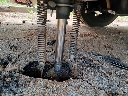 I had an interesting problem Sunday morning. My motorhome jack was buried in asphalt, and I could not get the jack retracted. Joe & Wes went out of their way to help me find some tools and parts to jerry rig something together that might get that jack unglued from Mother Earth. It was a head scratcher. With some parts that I purchased along with a jack stand that I borrowed from someone in the campground, I was finally able to pull it up.