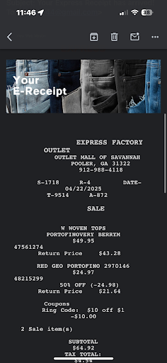 I will never shop at express again bc of the customer service at this store. First I open an express card they spell my name completely wrong and forget to put merch I paid for in my bag and I live an hour away. So I shopped online and returned stuff in the store. The next week I went to the store again and they told me they don’t do returns even tho they returned stuff for me a week ago. No one has a clue what’s going on there it’s more of a headache I will shop else. The girl is talking to me like what’s my problem? My problem is I wasted 2 hours driving to the store and...