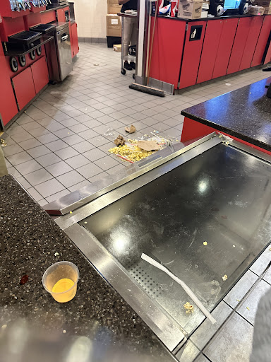 The cleanliness (or lack thereof) was disgusting. Trash cans were overflowing before we even went into our movie, and nothing had been touched by the time we came out hours later. Floors were sticky, counters were covered in spills, and there was food, trash, and grime in every direction you looked. It honestly felt more like a neglected gas station bathroom than a place people are paying good money to enjoy a movie.
