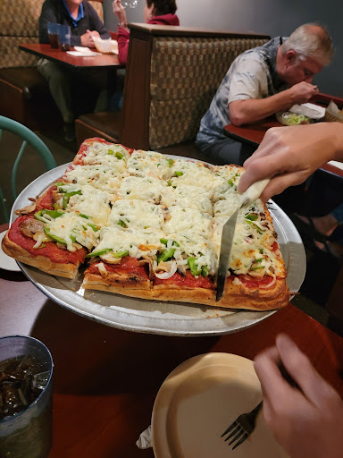 Amazing Sicilian Square Pizza! Our friends had a huge plate of Chicken Alfredo, and the Shrimp Scampi and they both claimed the dishes were outstanding! Another friend had the Calzone that he thoroughly enjoyed. Oh! The garlic knots were a huge plate of deliciousness with the best marinara sauce I have ever had. Also, our waitress was terrific, joking with everyone and smiling. She took great care of our group. We have never been disappointed and noticed a lot of take-out business and lots of local families coming here. We...