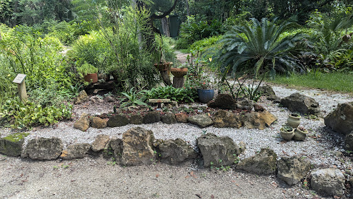 Read moreThere is a parking lot across the road from the entrance gate. Tickets are not required as there is a red donation box just inside the gate. There are restrooms along the path to the left after the entrance gate. We took the perimeter path first which goes around the property, but there are several paths that veer off. Paths are gravel but very easy walking under gorgeous live oaks and among gardens and Florida jungle greenery. There are benches scattered around for a quiet break. Several paths lead to places of interest; the historical sugar mill ruins, a tiny gnome village, several dinosaur statues left from Bongoland, walking bridges over small ponds with whimsical ornaments and many flowers and plants. We spent a leisurely 2.5 hours enjoying the...