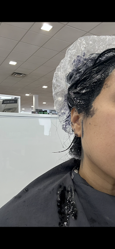 Claire finally started my hair around 3:15. She apologized for the wait, and I told her it was fine—I was just there to get my hair done and move on. Before putting the black cape on me, she placed a small towel on my shoulders. However, it seemed dirty and thin, and it clearly didn’t do its job. As she applied the color, everything felt messy and unorganized. I tried to trust the process.