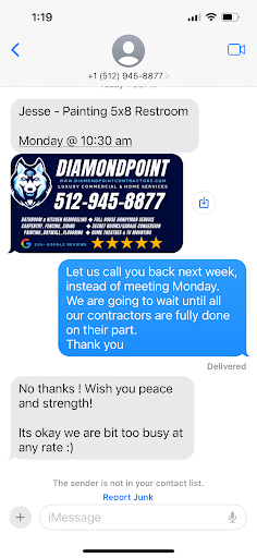 I have some rentals here and there and every time I run into business like DiamondPoint Contractors, it not only renews my faith in humanity and old school ways of doing business where sincerely reigns but it reminds me that there are still smaller businesses out that that want are eager to illustrate their commitment to quality, sincerity and reliability. Thank you...