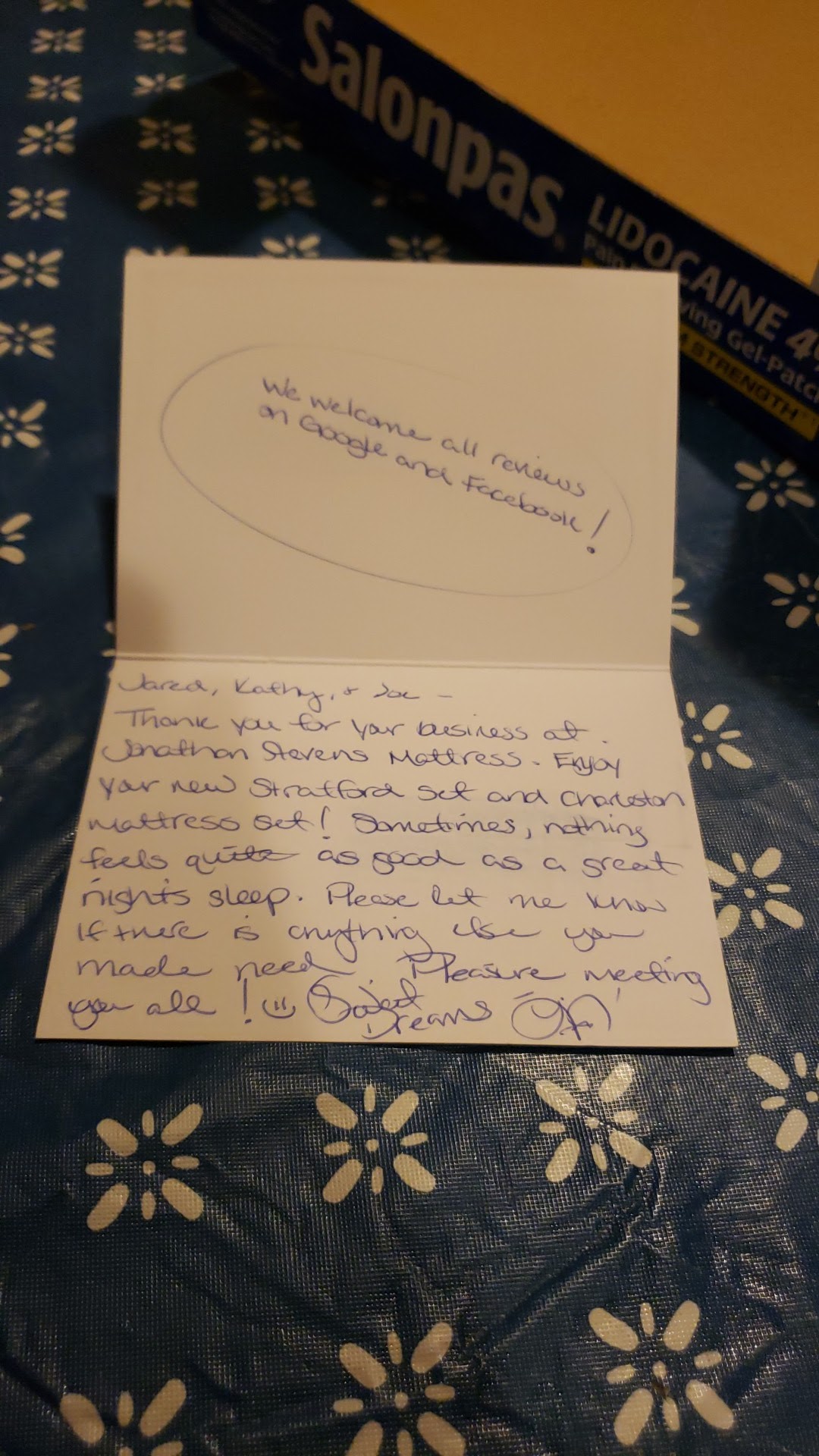 Read moreI love my new mattress!!! I needed to get rid of my old king size and get a queen. I was treated well and not pressured at all. Actually came back about 2 or 3 weeks later to order. I tried several of the mattresses without looking at prices. The one I really liked was surprising inexpensive, but it was the one I kept going back too. There was no pressure to upgrade either. I did not realize how poorly I had been sleeping on the old mattress. Now I am sleeping wonderfully. I track my sleep with my apple watch and I can see a difference in the pattern. Very little awake time and deep sleep taking place not only at the beginning of sleep, but sometimes later during sleep as well. Also, getting 7.5 to 8 hours of sleep. I like my bed so much I have to force myself to get up in the morning. I would highly recommend Johnathan Stevens if you are looking for...