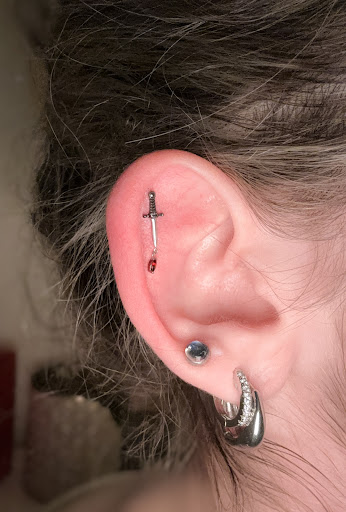 So I went to the shop and told the person behind the counter that I wanted to switch out my hoop for one with a smaller diameter and gauge. He told me that I could only have a smaller hoop, but not gauge, since my piercing needs to heal more. I said ok, but really wished that that information would have been shared with me ahead of time. I talked to one of the piercers and he said that he would attempt to change the hoop if my piercing was healed enough. Sounded good to me and I waited in the waiting room.