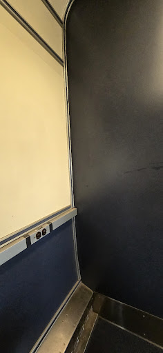 Business class is a small car with about 15 seats, so it fills up quickly. Not every seat has a window. On my way to Portland, I ended up in an aisle seat next to a friendly person. While I could see out the windows, a window seat would have been preferable. Despite arriving at the Seattle station an hour early, I was mistakenly placed in the 17 year old or people with 17 year old and younger boarding line instead of the business class line, so I was the last to board business class. I’d like to say I’ll know better next time, but I don’t think I’ll take this train again. The whole boarding situation was messed up, especially for those with luggage. I'm glad I traveled lightly. So, this train started out 20 minutes late. The person I sat next to was a regular passenger and said that it's common for this train to be about this late.
