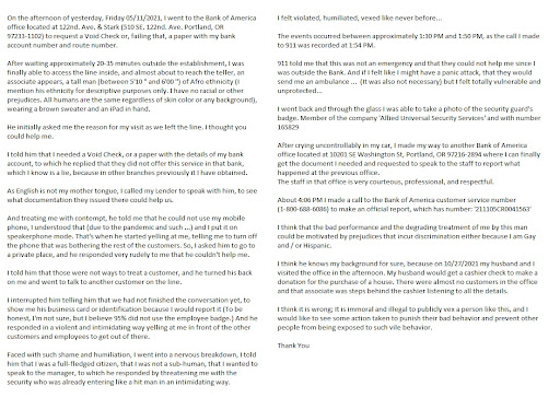 Im a local contractor and came to cash a check from another local contractor who banks with Bank of America. No hyperbole while waiting in line for the one banker, everyone in line was talking about how terrible this location was and they forget to go to the location on 102nd. The woman in front of me said “I’ve been coming here 10 years too long” once I got to the banker with the check and my ID I was told I had to do a verification on the check. I This is standard at all banks. The manager from start said “don’t you want to cash this at your bank and not pay the fee?” It’s 4pm id rather pay the 8 dollars and not wait until Friday to get the full dollar amount. After 15 minutes he tells me he’s sorry but it can’t be verifie and I’ll have to go to my bank. I said he just wrote the check to which the manager replied “there’s no way to prove that” but I thought that was the whole signature check number system name use? Like that’s what a check is. I asked him to call my client, because clearly after working in 90°s installing air conditioners all day the dirty sweat tattooed guy is being profiled. He said he already did before and there was no answer . I called my client (picked up immediately) and he said he has no missed calls. I would now like to be a part of the conversations initially waiting in line. Blown away by the experience and the managers reluctant attitude to do what banks do and the insulting measures he took to not do them. If zero stars was possible...