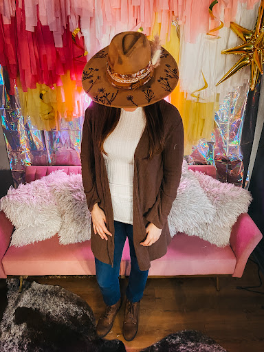 I came in last night with my sister who is visiting from out of state to take a hat making class and We had THE BEST time! Our hats came out so cute and Dez was a great hostess. She helped us every step of the way and we had great conversation with her. I can't wait to bring more visitors here to build my hat collect (that I just started because I'm not typically a hat person but as of last night I am!)....