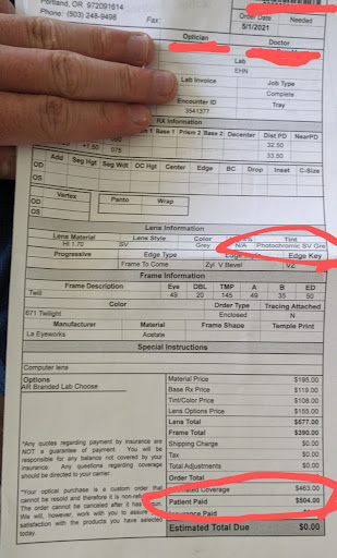 However, here is a tragic story that even with insurance I spent $500 on a pair of glasses (or $967 before the insurance) that gives me strong eye stress and without the photochromatic feature that's charged on the bill as attached. Because of the discomfort and eye stress, i have to keep wearing my old glasses. They don't allow refund even i told them right after 2 days of receiving the product without any scratch to the product!