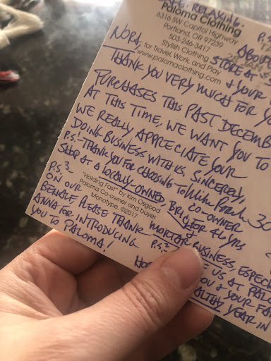 It was awesome to find my favorite jeans brand (Liverpool Los Angeles) in this local clothing store! I had previously found the brand in a Stitch Fix box years ago, but I'd like to make a more conscious effort to source local as much as possible. I wish I had more time to browse the shop. It was very easy to try on items in the store. I found Paloma Clothing to be welcoming, friendly and colorful with a wide selection of styles! I will definitely be back for more jeans, pants, tops...