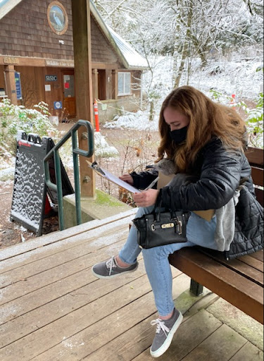 Michael picked Ms. Blackwood and I up; after I'd explained to he and Ms. Blackwood where an adult male seagull flew buy and smacked his right wing right at the shoulder against the side of my house a few summers ago. That seagull, he continued to fly, I shared. Then we made a trip in this snowy frozen inclement weather around the hills to get the seagull Ms. Blackwood the help she needs. We took photos, we filled out a form, I signed off on Ms. Blackwood the seagull's care and left my phone number on the form in anticipation to be invited to her release.