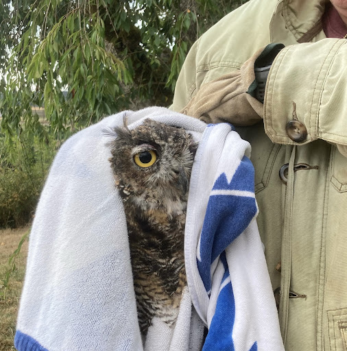 Sita was well behaved. She stayed in her bag and let me get the bird in a quiet comfortable place for her in my house in one of my spare bedrooms for the night after all attempts made yesterday were unsuccessful at getting her to the Audobon Society Audubon Society of Portland Wildlife Care Center yesterday.
