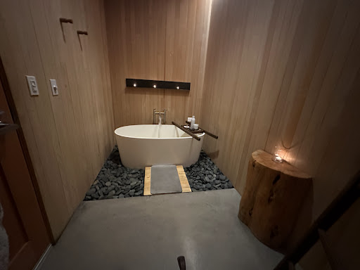 The bath water was near boiling when I arrived, so I ran cold into it for almost 5 minutes first, and the tub was then too full. The women had told me to "just press on the drain" to drain a little water out, but this proved to be incorrect. Once open, the drain wouldn't close. I ended up sitting in an empty bathtub about 5 minutes into my, "relaxing soak", trying to get the drain stopped so I could fill the tub again and relax, which did not happen. I was more tense after this then when I came in.
