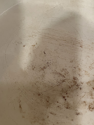 She said she had a hard time cleaning it and I said don't worry, I'll take care of it. She used a harsh sponge and/or metal on the bottom of my dutch oven while and it is scratched to heck (see pic). I don't care about staining, but scratching ruins it. She didn't say anything about scratching it.