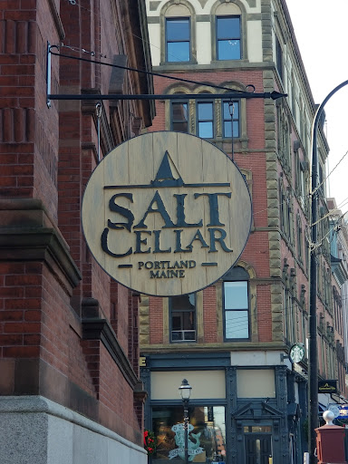 The area has lots of cute little shops around that are in walking distance. Easy to spot sign for the Salt Cellar, it is a round sigh on a brick building. It is located in a basement but is so cozy and welcoming.
