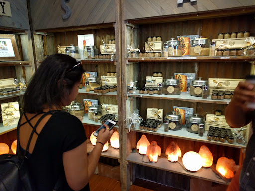 They got salts you can buy to cook with, along with cook books to buy too. They have shampoo, moisturizers, mud masks, carved salt candle holders, salt lamps, salt cutting boards and a few more things.