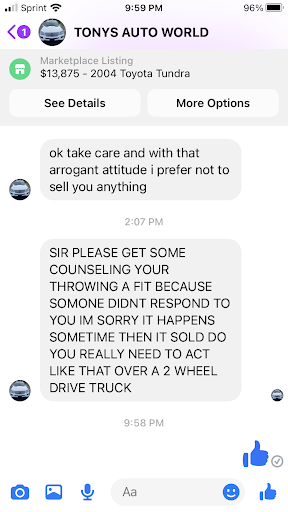 Read moreTony's had a great price on a Prius. I drove an hour to get there only to find that as soon as I turned the car on, the power steering light and battery warning light came on. Prius are known to sometimes have battery problems, most of them quite expensive to fix. I wanted the car checked out by a mechanic and as I drove to the mechanic's shop, I noticed the brakes were extremely sensitive. When I barely touched the brake pedal, the car braked hard. The alignment was way off, too. It turns out only the dealership could tell me why the battery warning light was on. It would have cost me $105 just to find out why. Then a pre-purchase inspection would have been another $100 to inspect the car mechanically. I was unwilling to put that much money into a car I wasn't sure I wanted anyway. I drove the car back to Tony's. When I opened the back trunk to see what kind of trunk space the car had, I noticed that the battery cover had been taken off. I don't know for sure, but I suspect that someone at Tony's disconnected the battery hoping that by resetting the battery, the warning light would stay off long enough for me to pay $7000 for the car and then be stuck with the repairs. So I was really unimpressed with the place. I had hoped previous reviewers were wrong. But I would say, be very very careful about buying a car here. Pay $100 to a AAA shop to have them inspect your vehicle before you buy it. I am glad I didn't spend any money on the car, but am irritated I lost 4 hours of my day to a trip to Portland for a car that obviously had some major issues. If you are thinking of making a trip here, call and ask them to turn on the key and tell you what warning lights come on. I also wished I had asked if it was a smoker's car. Because this one was and I would not have made the trip if I...