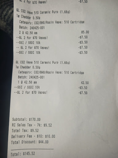 Read moreUgh. Have never had to start a dispensary review this way before, but.. honestly, I can NOT recommend this place to anyone unless, like me, you are desperate for delivery. I think they are they only place in this state that is delivering so far. Unfortunately for us, they seem to know it. The actual delivery was fine. However, they do not seem to offer a medical discount. According to my receipt and mathematics, there was no discount for placing my order as medical. I also made a huge mistake. Yip me, it's my fault. I misread something and ordered a product I actually did not want. I proceeded to call the store and ask about the discount and if they could do anything about the wrong product. After placing me on hold for a few minutes, she returned and said that the order WAS, in fact, a medical order.. did not say, but we don't have a discount but insisted everything was fine. Ok, whatever. I just didn't feel like arguing. So I asked about ordering the wrong product and was basically told.. too bad, so sad. Bye-bye. Wouldn't do not do a single thing for me, even being a first-time customer. MY mistake, but most places have a return policy of some sort. To not offer ANYTHING, I'm really disappointed.