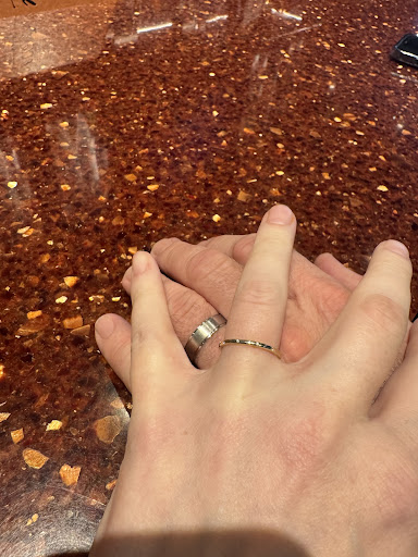 What a special shop! My partner and I were in Portsmouth this weekend, celebrating our birthdays. Our wedding is a ways off for reasons outside our control, but we decided to peruse wedding bands for fun. Little did we know that we'd leave with the most perfect bands imaginable. From the moment we stepped into the shop, it just felt magical. We told Claudia (we think that's her name—we will be following up to make sure, since she's totally invited to our wedding) what we were searching for, and that we just wanted plain bands. She never once tried to upsell us on engagement jewelry or things we weren't there for, which was such a breath of fresh air (why does everyone want me to have a huge diamond?!). She led us to their tray of wedding bands for us to try on for size, which aren't actually gold or available for sale. We told her what we were each looking for—me, super dainty and gold or rose gold to go with my existing jewelry, and for my partner, likely white gold to go with his watch. Well, somehow, she mentions that she has a band that is "delicate and sweet", gold with the teensiest, tiniest diamonds in it that make an otherwise simple band remarkable. I literally could not imagine that this band existed, or that it would be so right. She took it out of the case, and the fit was 100% perfect. Not a minute later, she remembers she has one men's ring that is brushed white gold. Onto my partner's finger it went, also a perfect fit. What?! I think she was just as surprised as we were that these rings, right out of the case, were perfect for us. She said it had only happened to her once to her before. We recognize signs when we see them, and I said, "Can we just...take these home?" Yes, yes we could! She had her associate clean them for us and got us two beautiful boxes—but we slid them onto one another's fingers and wore them out of the store. I doubt I will feel any more married than I do right now with these perfect bands. We simply can't believe how wonderful they are, and how they are part of the magical layers of our story that always seem to turn out just right. Go visit Summerwind for your own little slice of magic! (On the more practical side, this shop is women-owned, has an amazing selection, a wonderful sales team, and extraordinarily fair prices—each of our bands was under $900, when we had been to other shops charging $1500+ for...