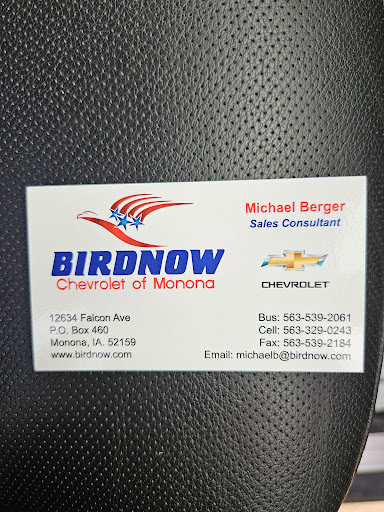 I cannot say enough good things about my experience with Birdnow in Monona, IA! Is there a button for 10 stars? I have dealt with so many dealerships, that I was honestly burned out with the aggression, lies, and their greediness over money, rather than my happiness in finding me the perfect car. I knew what I was looking for and I stumbled upon Birdnow Monona, IA, and I drover the 2 hours there to give it a shot before I called it quits for awhile. BEST DECISION EVER! Worth the drive, every moment of it. Upon my arrival, I was greeted by the amazing staff. Not the annoying type where they bum rush your car before your even out of it. And even if I wasnt working with one of the other staff members, they were all friendly, and made conversation. Great group of poeple! And they don't push for an immediate decision and get you to sign papers before having time to digest what it is you just drove, or if its something you want. I had a minor hiccup, that was fixable, after I bought my car. Nothing major. But as soon as I called them, they had someone on their way to pick up my vehicle, leave a loaner for me, while they took my car to make it right and fix the issue. I wasn't inconvienance at all. I wasn't left without transportation. And I didn't have to wait. I felt like I still mattered AFTER the purchase. Respectful! That's the word that defines them! My overall experience with them was the best Ive ever encountered. I will definatley be going there again and referring everyone I know. I wouldn't give a higher recommendation to anyone one else. They truly deserve it! Thank you everyone at...