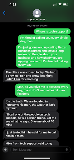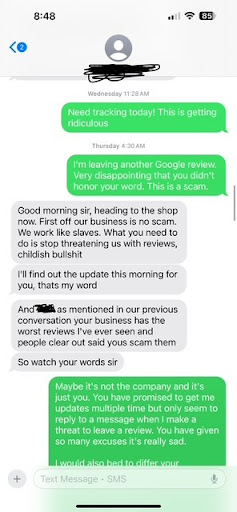 On October 31st, no update came. After texting twice, I finally got a late-night response. The next morning, the employee called with more excuses—blaming the internet and leaving early for Halloween. When I calmly expressed my frustration, they cursed at me and mocked my own business’s reviews in an unprofessional attempt to shift blame.
