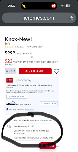 This was the closest store with the patio set that I wanted. The store is .45 minutes away from where I live, so I'd hope getting in contact with customer service would prevent me from having to drive to the store. Unfortunately, I ended up driving to the store to resolve this issue. When I arrived, I saw three store representative standing around, but was told that they were swamped. Also, the store had about 5 customers walking around. It is obvious Jerome's does not care about...