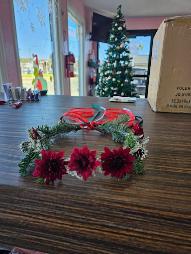 The third time, I did plan ahead and asked them to make my toddler a flower crown for her pre-school holiday concert. They used fresh pine and eucalyptus. They hand glued each pinecone and topped it off with ribbon and glitter, it was a hit and everyone at the show asked where we got it from.