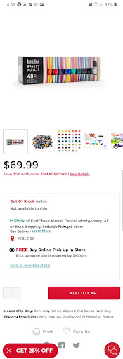 Read moreThe store is alright. Last time I will be using online ordering, the first time went horrible. It takes them about three hours to pull anything and than I sat in the parking lot for 30 minutes, called them and they said they would bring it out. Half the order was cancelled and than waited another 15 mintues and went in and got it. I gave it another chance giving them the benefit of the doubt and have been waiting for them to pull FOUR yarn skeins for three and half hours. I called them and was told it was going to take another thirty minutes. One of the yarns is not in stock all of a sudden and it tales four hours to pull 3 yarn skeins? Be wary of curbsite you would be better off...