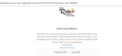 Read moreI bought a puzzle ride around Christmas. The night of our ride there was a good amount of snow and winter weather, and the company canceled on us. When I requested a refund I was told to go through their insurance company. When I contacted the third party, they told me they don't refund for weather, even though Puzzleride canceled the event. I do not recommend this place at all in the winter months; if they cancel for weather, you will lose all of your money. They offered me a voucher which I never received. I never got my money back, never got a voucher for a future trip... nothing. Last news was they would see what they could do... then crickets. Terrible...