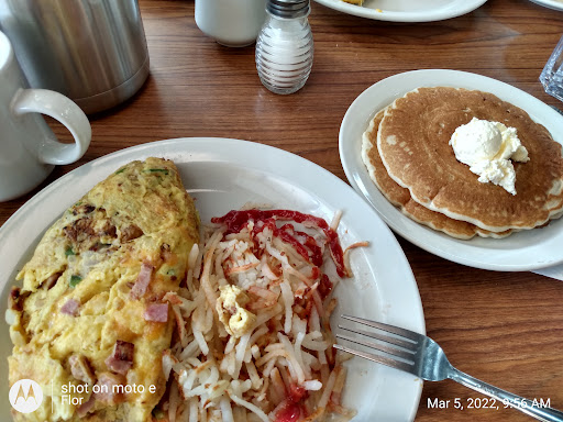 New breakfast n lunch restaurant. Large variety of menu offerings, Crowded Saturday morning, food Denver omelet was good, n hot. Hash browns could have been longer. A little raw. Regular Pancake were nothing to brag about. I expected a more flavor full pancake. But they do serve a exceptional variety. Prices $$. Good. Table service great checked up on us numerous times. Our waitress first day. Did a good job, her supervisor checked up...